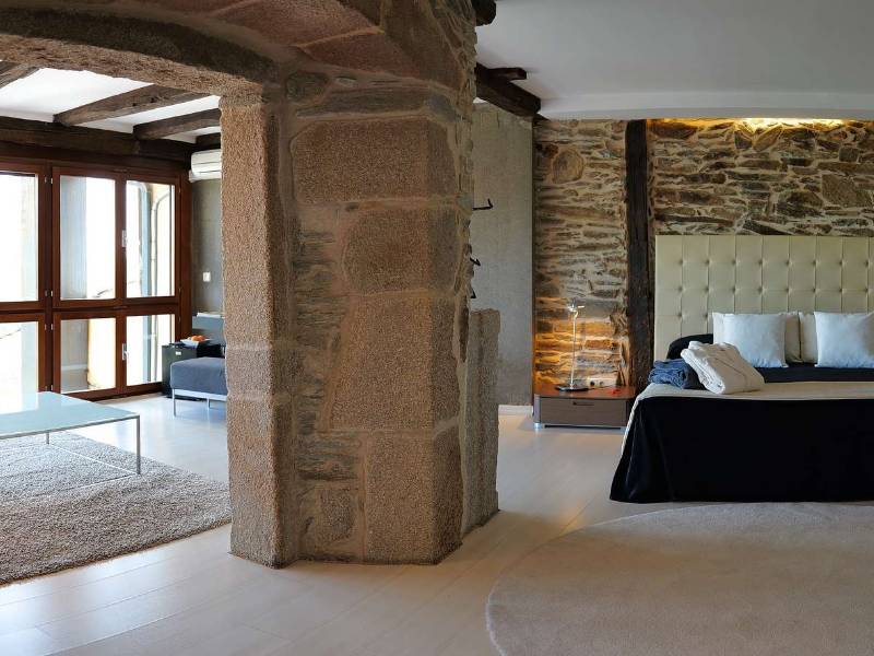Installée dans un bâtiment à arcades du XVIIe siècle qui fut une ancienne auberge castillane. Lors de sa réhabilitation, il a été respecté quelques-uns de ses éléments originaux, ses parois faites en pierre plates ainsi que le poutrage qui ont été combinés avec les plus modernes et nouveaux éléments constructifs et décoratifs, tels que des planchers rayonnants et une lampe originale qui pend de la cage de l’escalier.