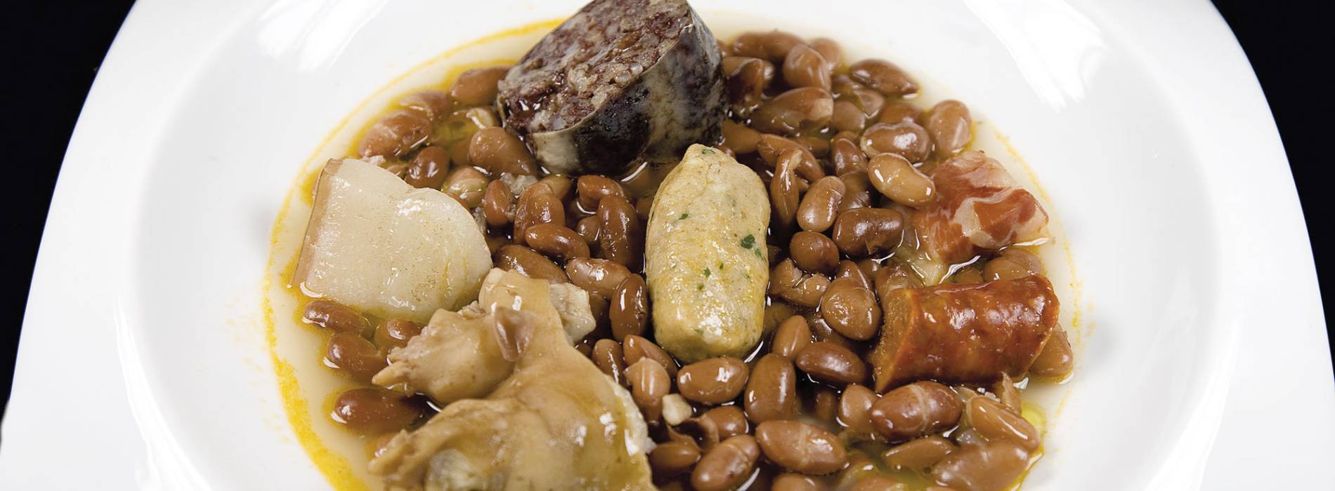 Coloque o feijão em água fria para demolhar na noite anterior. Troque a água e ferva-os com o pé de porco, o toucinho e o chouriço. Deixe ferver por 2 horas (até ficar macio). Depois de cozido, adicione a páprica. Corte a morcela em rodelas, passe-as na farinha, frite em um pouco de azeite e junte ao feijão.