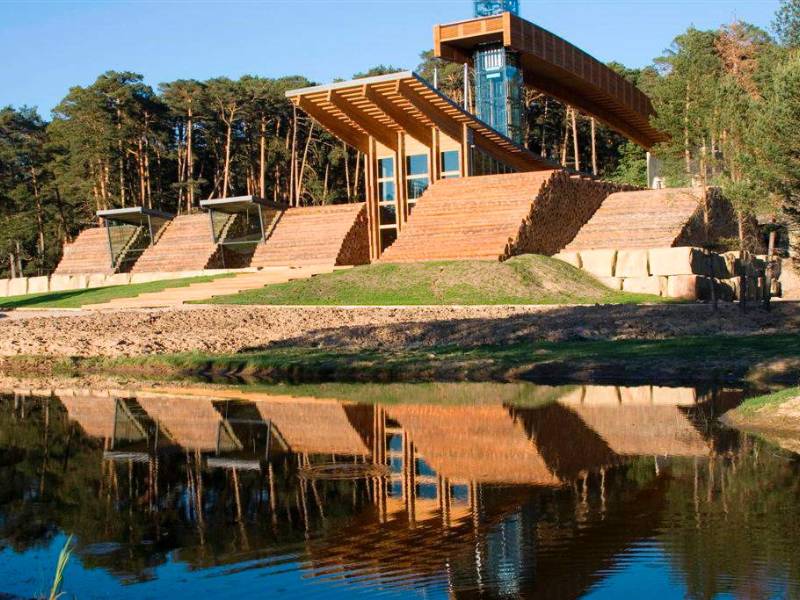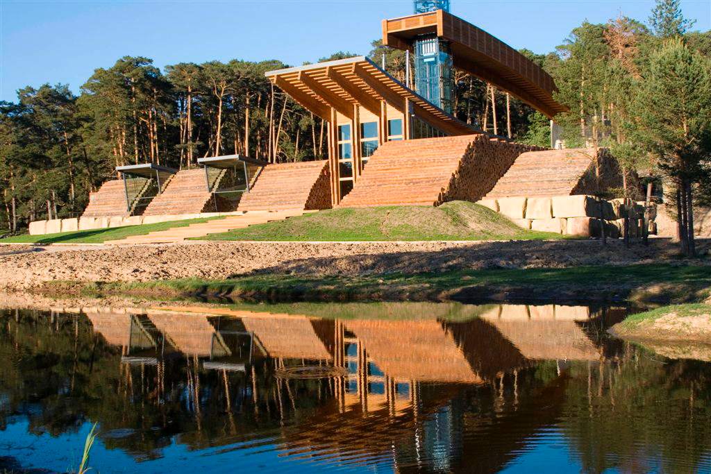 Um dos aspectos mais marcantes do Centro de Visitantes é a utilização inteligente de materiais retirados das próprias florestas: o pinheiro de Sória e Burgos e o arenito, dois materiais nobres que desempenham um papel essencial na economia da região. No seu interior, o centro dispõe de diversas salas de formação e reuniões, oficinas e ainda miradouros sobre os magníficos campos abertos da Revenga e as florestas, oferecendo aos visitantes a oportunidade de admirar paisagens deslumbrantes.