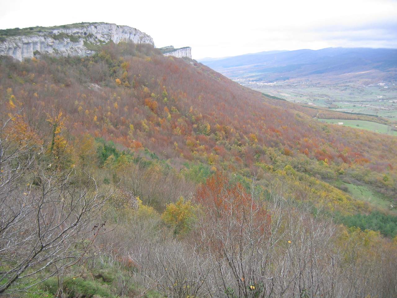 O passeio segue entre campos verdes até o bosque de faias de Vallejas, localizado à sombra de altas falésias.