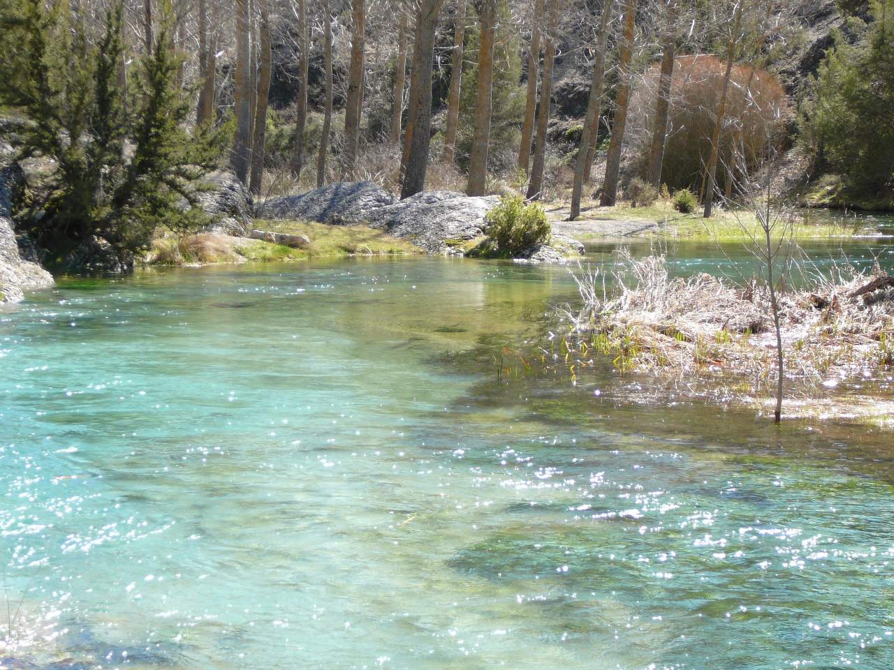 O caminho permite-nos observar diferentes tipos de paisagens: um bosque de zimbros, um pinhal, um bosque de azinheiras, a margem do rio e a agricultura.
