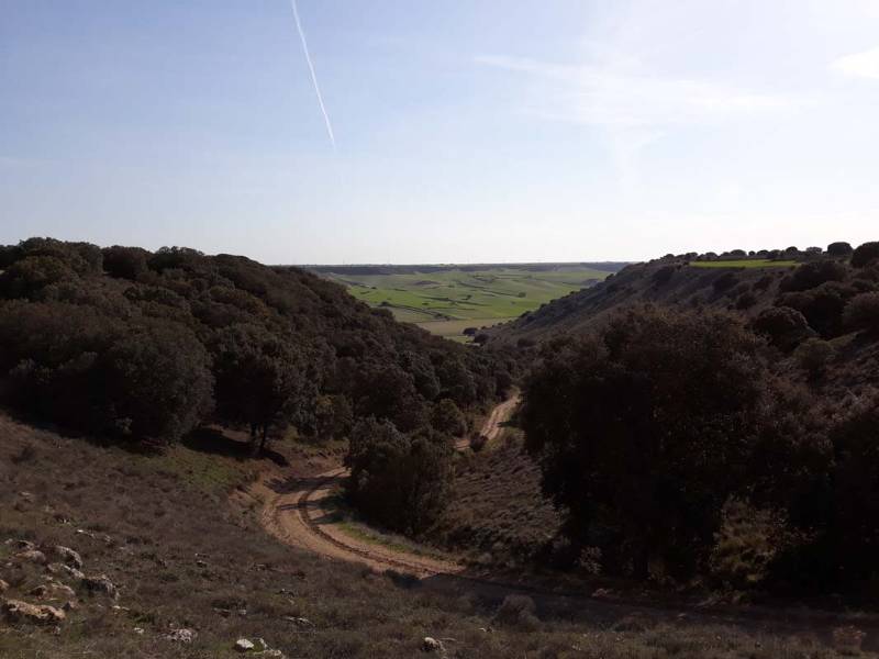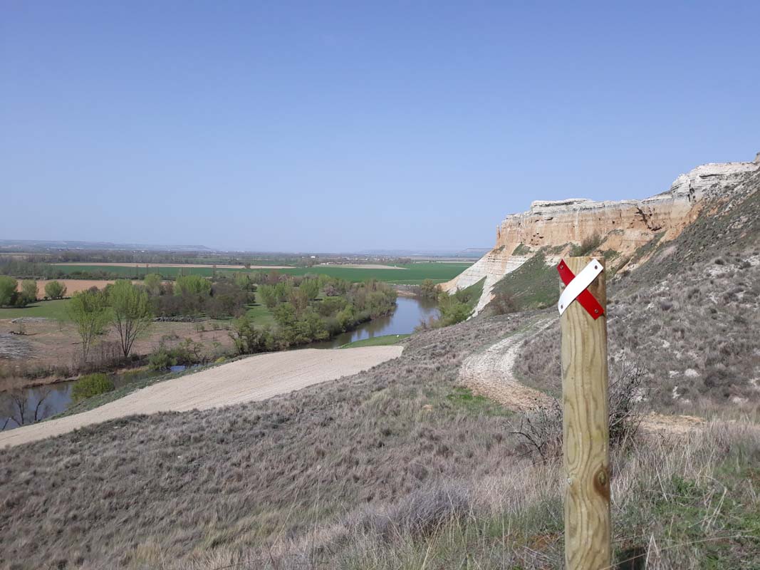 Percorre inúmeras vinhas, vistas sobre o rio Pisuerga com as suas falésias, cabanas, Monte de Dueñas, campos de cereais e charnecas.