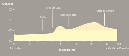 Na saída de La Losilla em direção a Palazuelo de Boñar, tomar um caminho de terra que sai à direita e leva a Boñar. Esta rota atravessa de sul a norte até chegar ao Barrio de las Ollas. Da parte alta desta localidade chega-se a um caminho de terra que nos permite a ligação com a estrada Ranedo de Curueño. A partir desta estrada começa uma trilha à esquerda pela qual desceremos até Otero e daí até La Vecilla de Curueño.