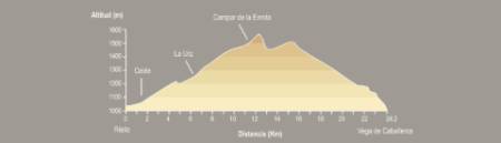 Uma vez no centro de La Urz, composto por dois bairros claramente diferenciados, deve-se seguir as ruas que conduzem à parte alta da vila para tomar o caminho Debesa, que acaba por conduzir ao Campar de ocurral. o eremitério. Neste ponto, situado numa colina que abrange as regiões de Omaña e Luna, o percurso muda abruptamente de direção, virando à direita para continuar ao longo da larga caixa de uma pista de gado, o chamado Cordel de Babia de Abajo.