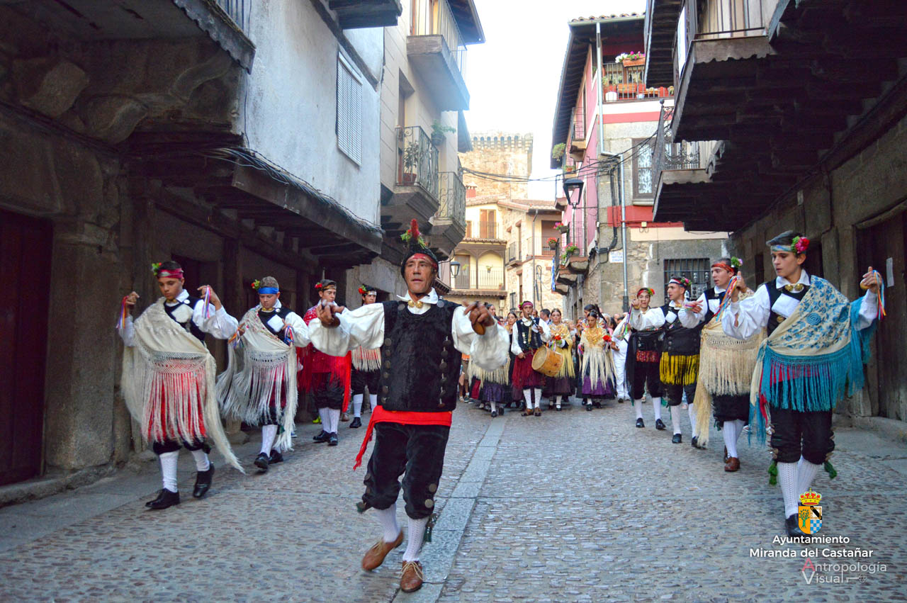 Da Prefeitura a festa dos dançarinos com suas roupas tradicionais, e das mulheres, com seus espetaculares vestidos típicos de Miranda del Castañar, com suas joias, xales de Manila, flores, penteados tradicionais, e assim por diante.