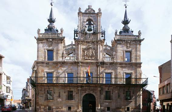 Edifício civil com duas torres e campanário, com brasões e esculturas na fachada. No topo existem dois 'maragatos' que marcam as horas através de um mecanismo original. Conserva o famoso 'Pendón de Clavijo'.