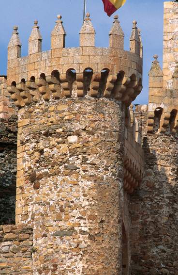O castelo é constituído por um grande recinto poligonal (mais de 8.000 m2) com ameias duplas e triplas, torreões, salas e um grande pátio baixo ou albacar.