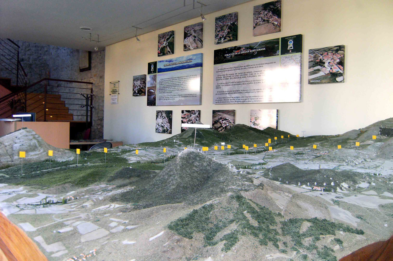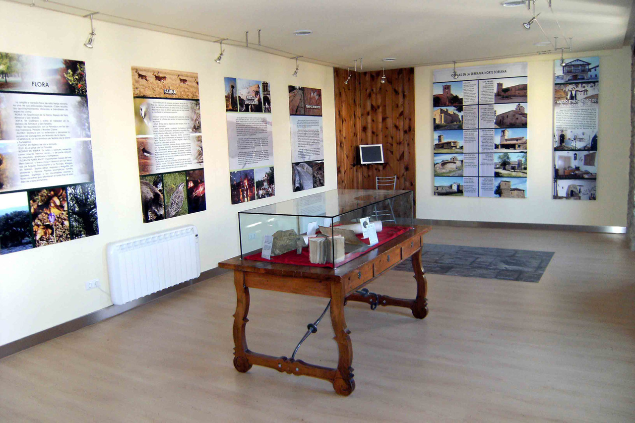 - O primeiro andar é dedicado aos painéis informativos sobre a fauna e a flora da zona, as 10 igrejas do município, o museu etnográfico de San Andrés de Sória, as festividades únicas e os vestígios mais antigos. As icnites (pegadas fossilizadas de dinossauros) encontradas no sítio Gallinero dehesa foram reproduzidas no solo.