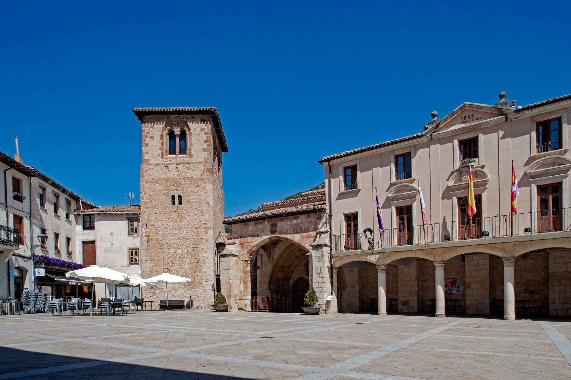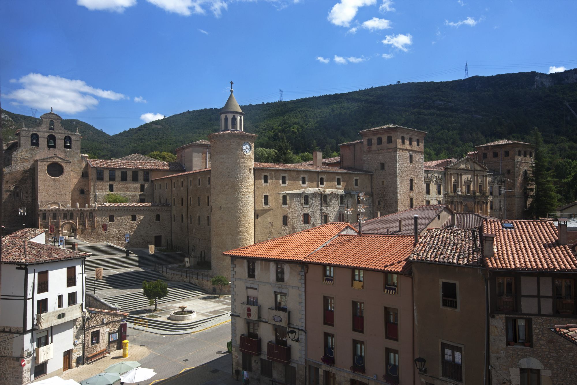 Num ponto estratégico entre o planalto e a Cordilheira Cantábrica, junto ao desfiladeiro que o rio Oca criou antes de desaguar no Ebro, ergue-se a bela vila de Oña , em Burgos .