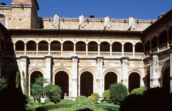 Destaca su fachada plateresca, en la que intervinieron Juan de Juni y Pedro Larrea. Son de gran interés también su iglesia, de estilo gótico, y el claustro.