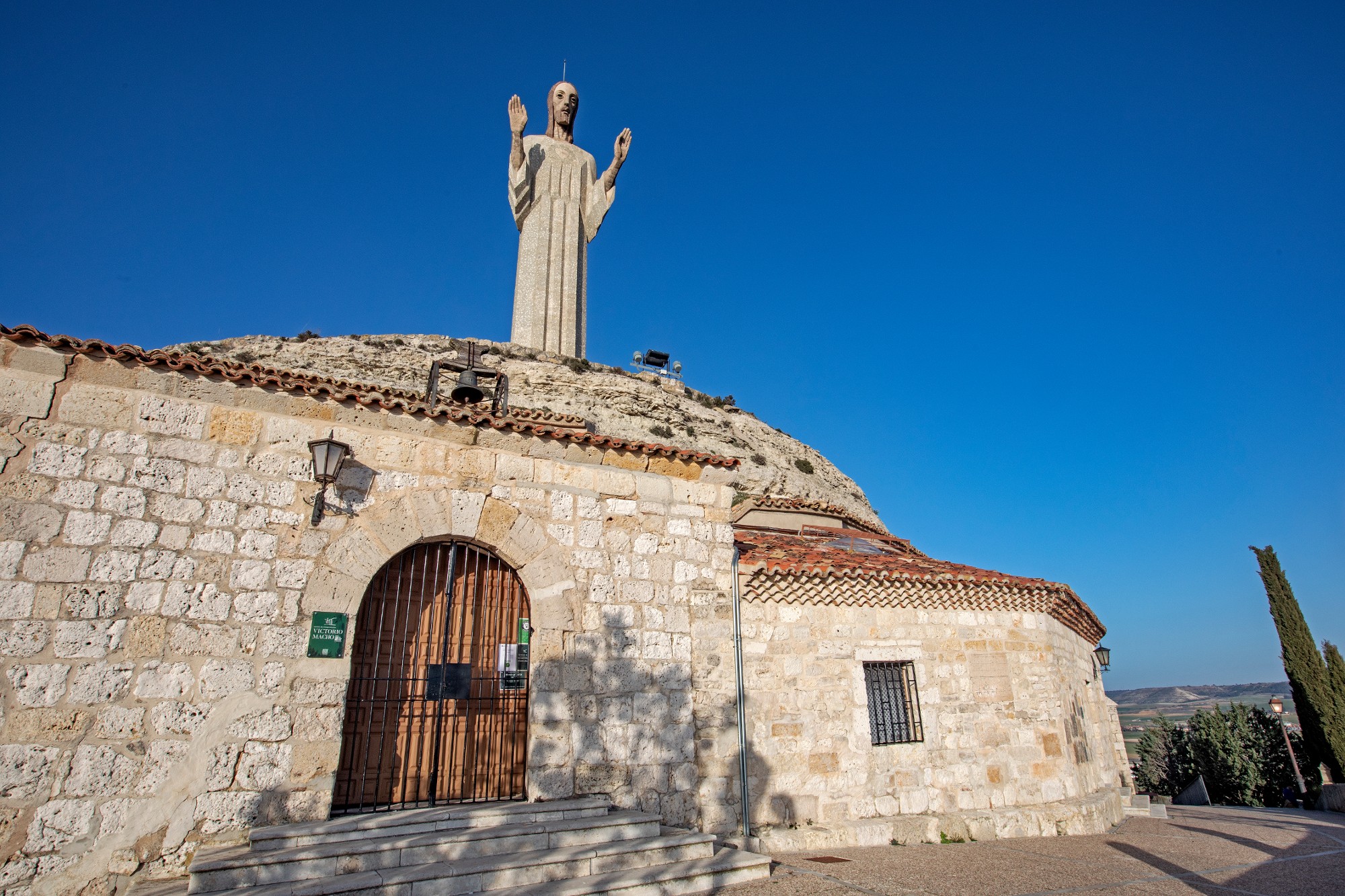 Abaixo da estátua e escavada na encosta, encontra-se uma ermida de origem antiga com três naves, onde está sepultado o escultor deste Cristo; há um pequeno museu que mostra os projetos de algumas de suas obras. Segundo a lenda, este é o local onde, no século VI, Santo Toribio se refugiou dos seus concidadãos, que não admitiam a sua denúncia da heresia prisciliana, da qual eram seguidores.