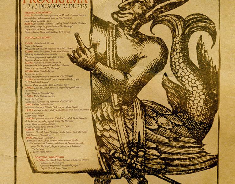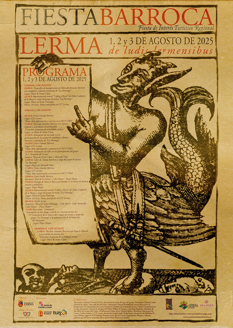 O Festival Barroco de Lerma é uma celebração anual que transporta os visitantes ao esplendor da Idade de Ouro da Espanha. Durante o primeiro fim de semana de agosto, as ruas de Lerma se enchem de desfiles, teatro clássico, música e dança barroca, recriando as luxuosas festividades que o Duque de Lerma organizou no século XVII em homenagem a Filipe III e sua corte. Este festival, declarado de Interesse Turístico Regional, destaca-se por sua autenticidade e pela participação de mais de 400 moradores, tornando-se um marco cultural e turístico em Castilla y León.