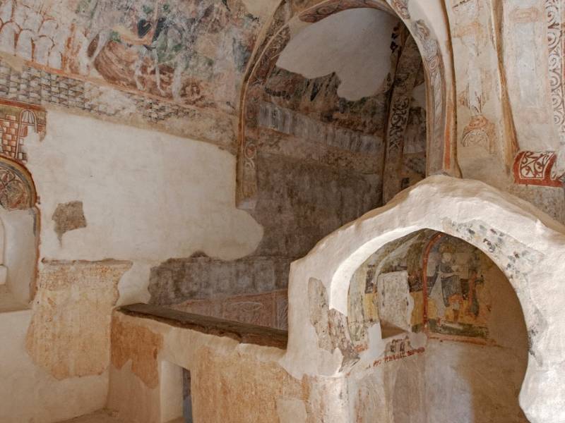 Todas as paredes foram revestidas a têmpera, pinturas românicas e moçárabes, algumas das quais ainda lá se encontram e outras, demolidas, encontram-se nos museus de Boston e do Prado.