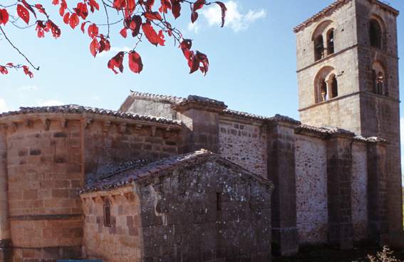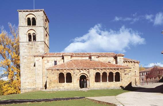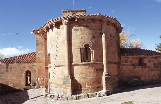 Igreja do século XII. Possui torre e pórtico com sete arcos românicos, com colunas e esculturas nos capitéis. No seu interior existe um falso transepto com imagens. Um interessante Calvário do século XIV.