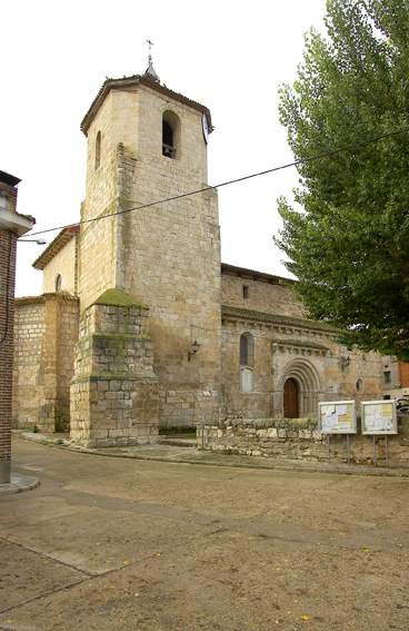 Este templo foi construído com bons blocos e silhares de arenito calcário, e foi iniciado no final do século XII, construído durante o XIII, transição românica. Possui piso basílico de três naves com pilares retangulares com semicolunas fixadas nas pequenas laterais, das quais resultam arcos de meio ponto e arcos pontiagudos.