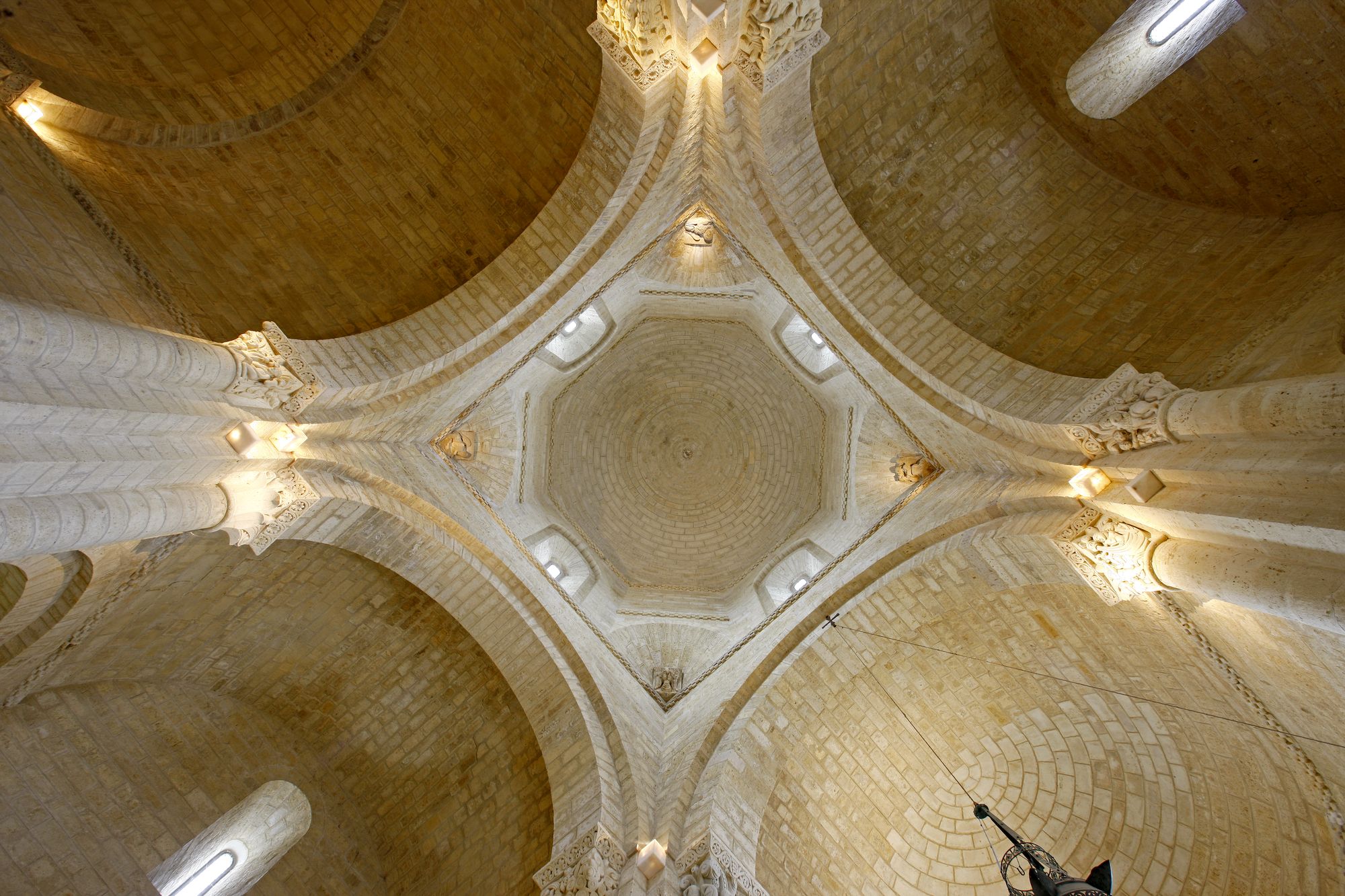 Existem dois interessantes torreões nos cantos da empena e um crucifixo gótico do século XIII. No interior, as três naves estão divididas em cinco tramos, sendo o quinto mais alto que os restantes e formando o transepto. As naves são cobertas por abóbadas de berço redondo. As abóbadas laterais são mais baixas e estreitas que as centrais e do transepto, e assentam em arcos de volta perfeita.