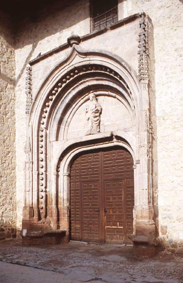 Frente gótica flamejante trazida da catedral original de Segóvia. A peculiar torre, a abside e a fachada em tijolo são românicas. Possui três naves à mesma altura, de piso de hall, quase quadrado e de estilo gótico do século XVI.