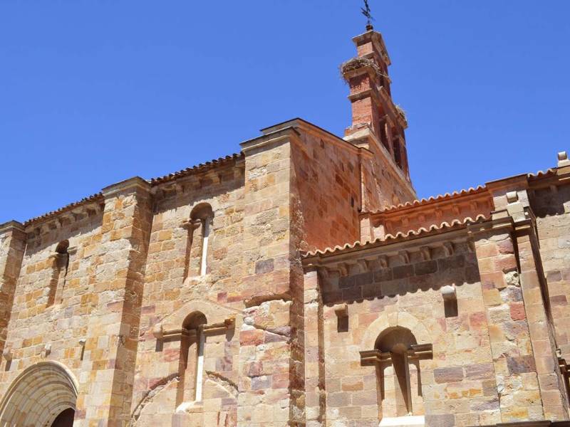 É uma igreja românica do século XII e o seu interior foi restaurado várias vezes durante o século XVIII, o exterior permanece intacto. Mantém a sua estrutura original no exterior. Originalmente era uma igreja de piso basílica com três naves de quatro tramos cada e cabeceira de três absides retangulares. Assemelha-se à igreja de Santiago el Burgo, mas com formas de madeira mais escura. As absides são retas e ao centro encontra-se a abertura mais decorada, com duas arquivoltas e dois capitéis vegetalistas. Subsistem ainda a meio da subida os suportes do alpendre desaparecido e não se conservam a sua torre original nem a estrutura interior das naves, embora subsista a cabeceira tripla.