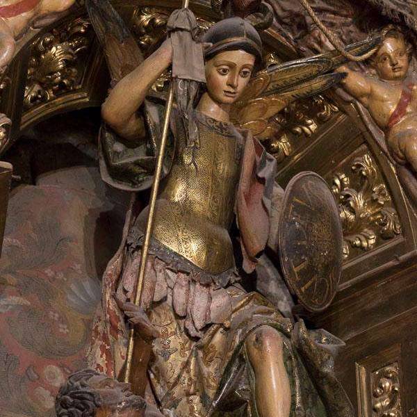 Construída no final do século XVI. No exterior destaca-se uma destacada fachada em arco redondo ladeada por colunas emparelhadas encimadas por frontão. A torre de tijolos de três andares foi reformada no século XVIII.
