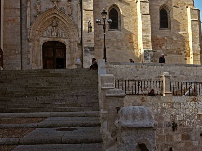 A construção começou no século XV. A simplicidade da sua fachada contrasta com a riqueza do seu interior. Destacam-se especialmente o retábulo de pedra de Simón de Colonia, os sepulcros góticos e um arco renascentista no sepulcro de Fernando de Mena e María Sáez de Oña.