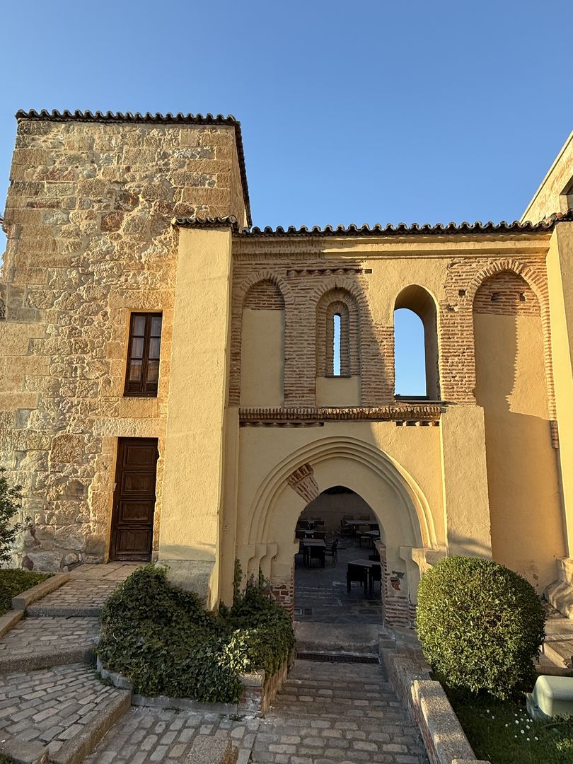 Sua construção começou no estilo românico mudéjar, com uma nave de três corredores e uma capela-mor com três absides, utilizando tijolo como material de construção. Ao longo dos séculos, sofreu diversas transformações, sendo a mais notável a reforma de 1529, que adicionou uma torre e a fachada oeste no estilo gótico tardio, utilizando pedra em vez de tijolo.