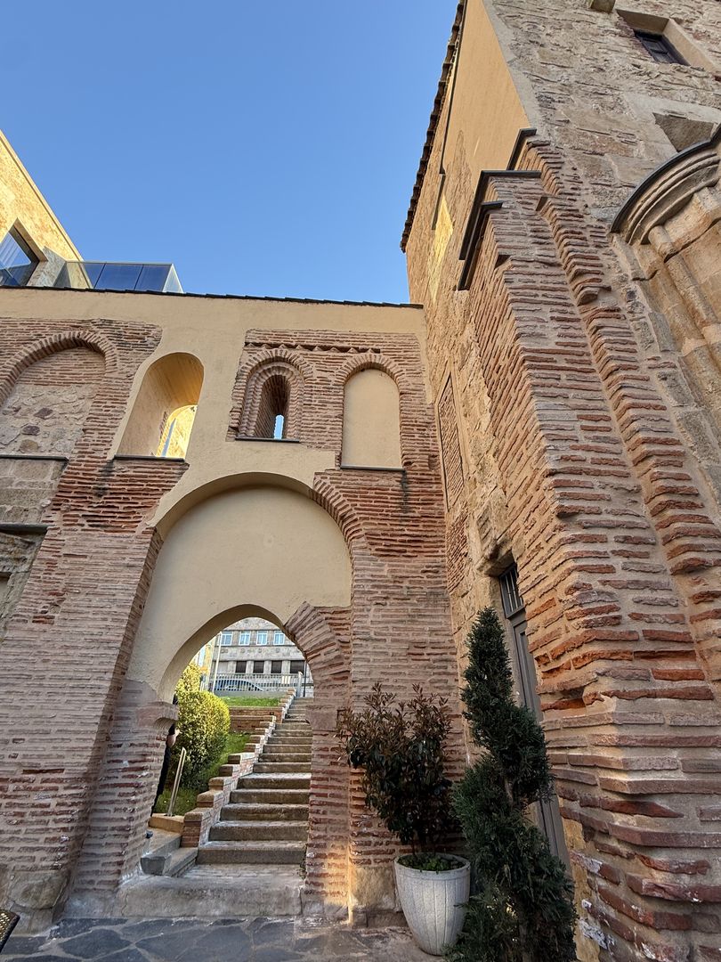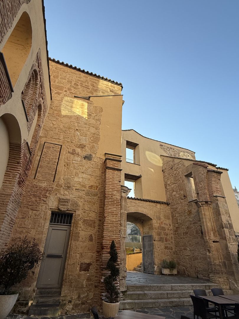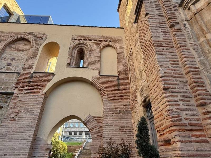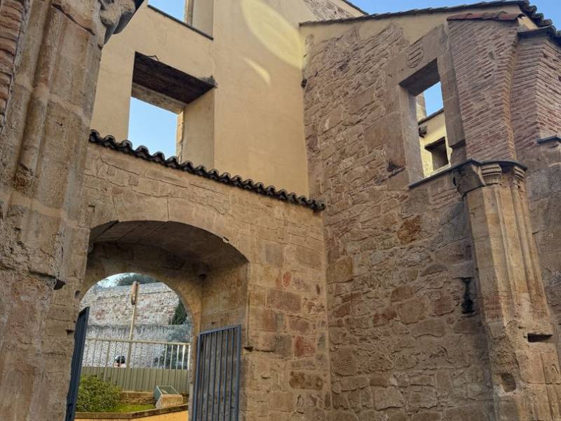 Atualmente, apenas alguns vestígios do edifício original são preservados: as paredes da nave até a área do transepto, a fachada gótica na base, a parede sul decorada com arcos cegos e um portal reconstruído com arco ogival, bem como os primórdios das absides românicas, sendo a central de maior porte.