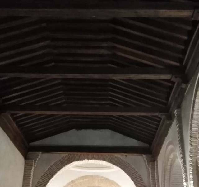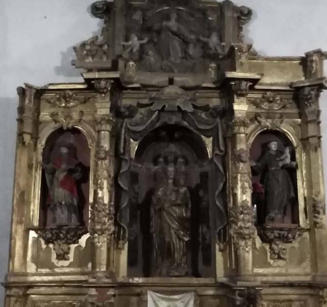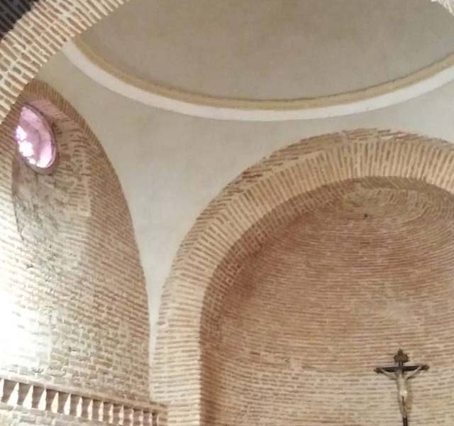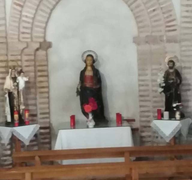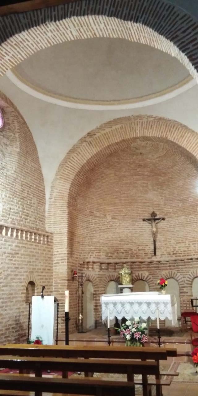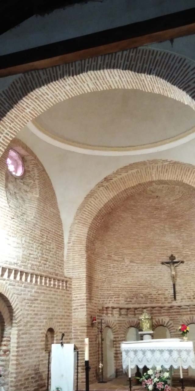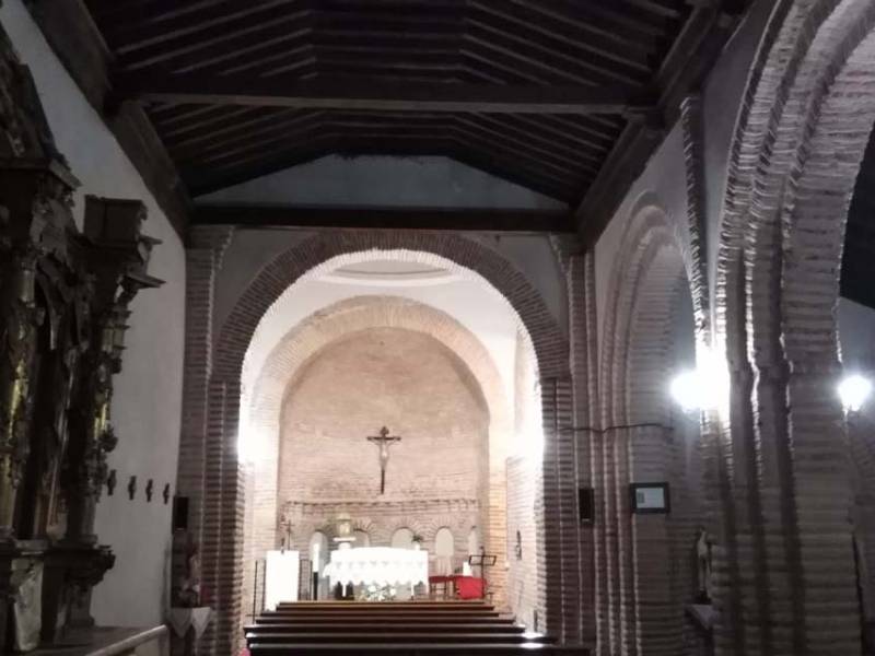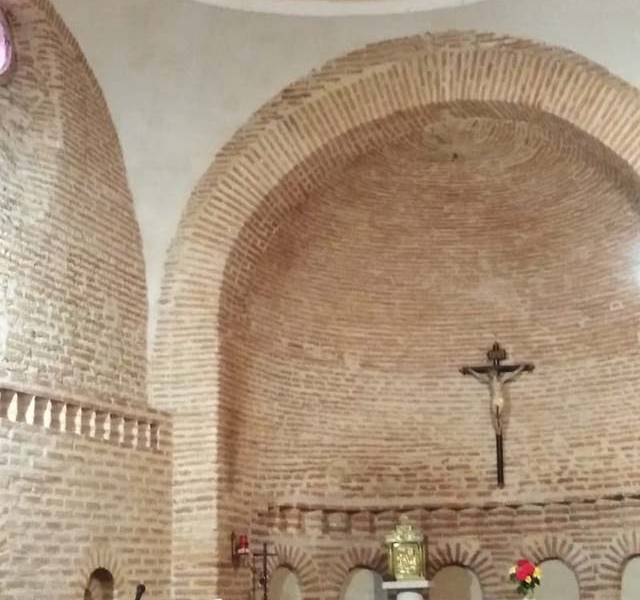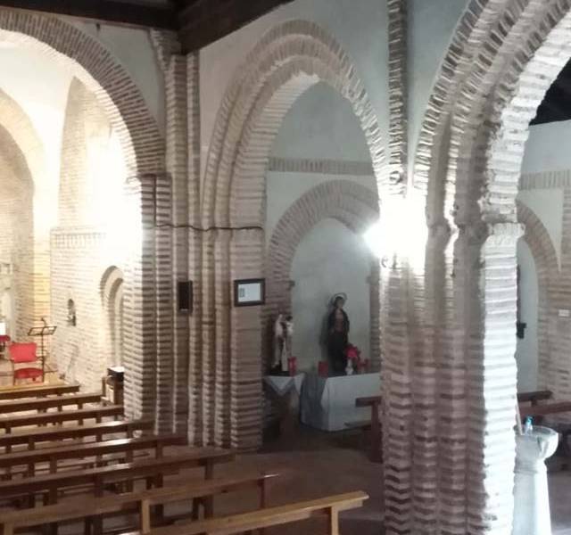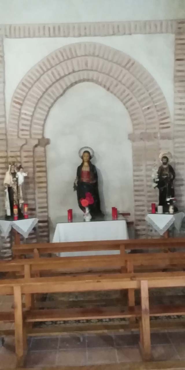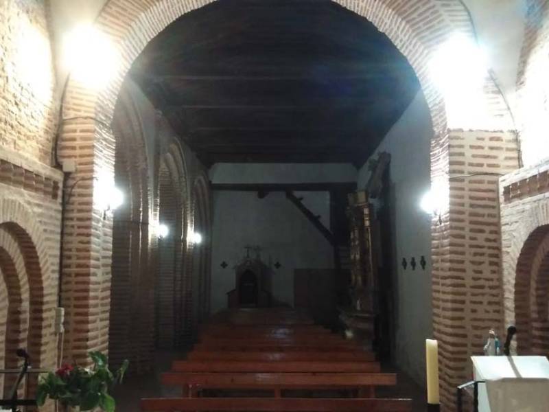 Pequeña iglesia románico-mudéjar de fines del XII con una nave central y una colateral a su derecha comunicadas por tres arcos de medio punto peraltados con triple arquivolta. El ábside del interior está en buen estado y es muy similar al de la Iglesia de Santiago en Alba de Tormes, en el exterior sólo se conserva la base y el muro, con seis arcos dobles.