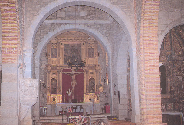 Esta igreja, declarada monumento histórico-artístico em 1981, apresenta um corpo de naves do século XIII, individualizado por grandes arcos de tijolo de estilo gótico-mudéjar. As reformas dos séculos XVI e XVII afetaram a capela-mor e o transepto, bem como a capela do Evangelho, coberta por abóbada nervurada gótica. As capelas das naves colaterais apresentam belos tectos em caixotões com muqarnas e pendentes franjados, sendo a armadura da nave central mais simples.