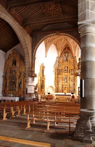 Edifício gótico e renascentista construído no século XVI, a cabeceira foi construída no primeiro estilo, posteriormente, as naves renascentistas, às quais se juntou também o estilo mudéjar quando foi revestido com tectos em caixotões de madeira. Construída em taipa, tijolo e pedra, a igreja tem três naves separadas por grandes arcos semicirculares sobre grossas colunas dóricas.