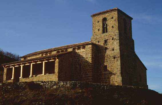 教堂规模较小,建于 12 世纪末或 13 世纪初,带有罗马式风格的古朴元素,只有一个中殿和一个矩形的横梁。后面是偏离轴线中心的塔楼,塔楼的地板为方形,底座为原始时期的。