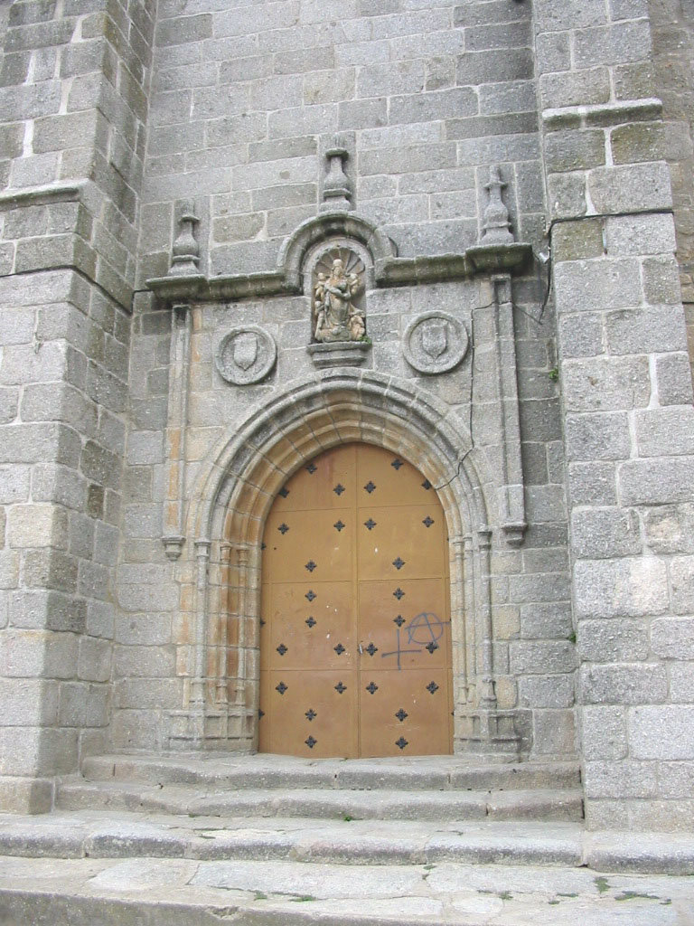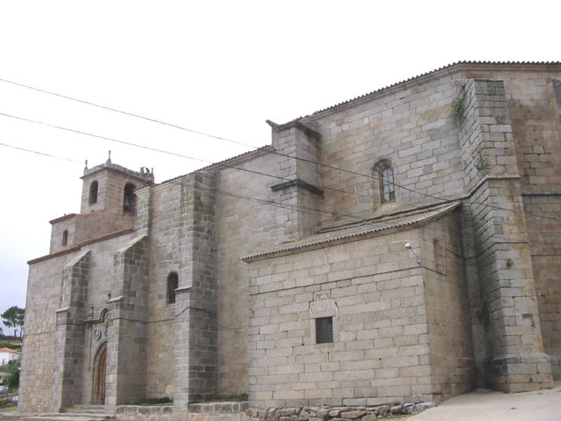 Esta monumental igreja começou a ser construída no século XV e é toda em alvenaria de granito. No exterior estão marcadas três alturas, sendo que de mais para menos estão a capela-mor, a parte tangente a ela e a dos pés. Tanto a secção antepresbiteriana como a capela-mor são cobertas por uma complexa abóbada estrelada de arranha-céus e desenho idêntico ao de La Fregeneda. Esta obra pode dever-se ao círculo do pedreiro Pedro de Ibarra. No exterior destaca-se sobretudo a torre e destaca-se a austeridade dos volumes de limpeza, com contrafortes monumentais.