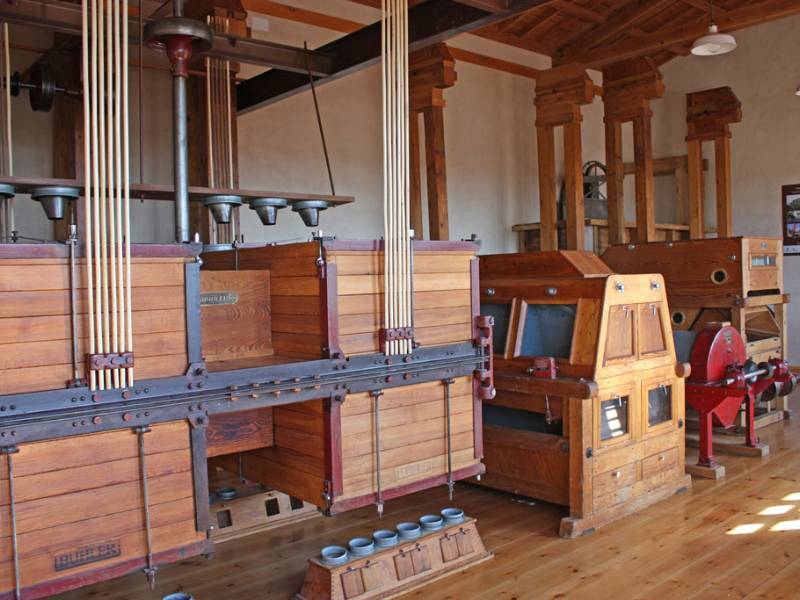 No pátio existe uma grande área coberta onde estão expostas dezenas de máquinas de moinhos de farinha de diferentes províncias de Castela e Leão . Eles estão perfeitamente restaurados e preservados. Pretendemos disponibilizar gradualmente estas máquinas de movimento para que os visitantes possam compreender melhor o seu funcionamento. Na verdade, já funciona um laboratório de moleiro, onde são realizadas demonstrações de moagem e peneiração para grupos.