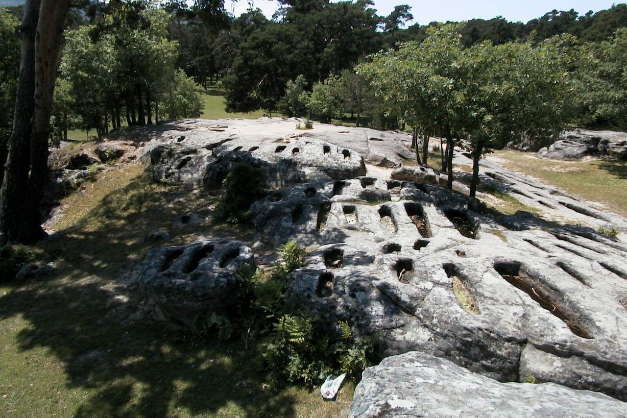 A necrópole rochosa, localizada em um pequeno afloramento rochoso, tem uma área estimada em 2.000 metros quadrados, e nela estão documentados cerca de 140 sepultamentos de diversos tamanhos.