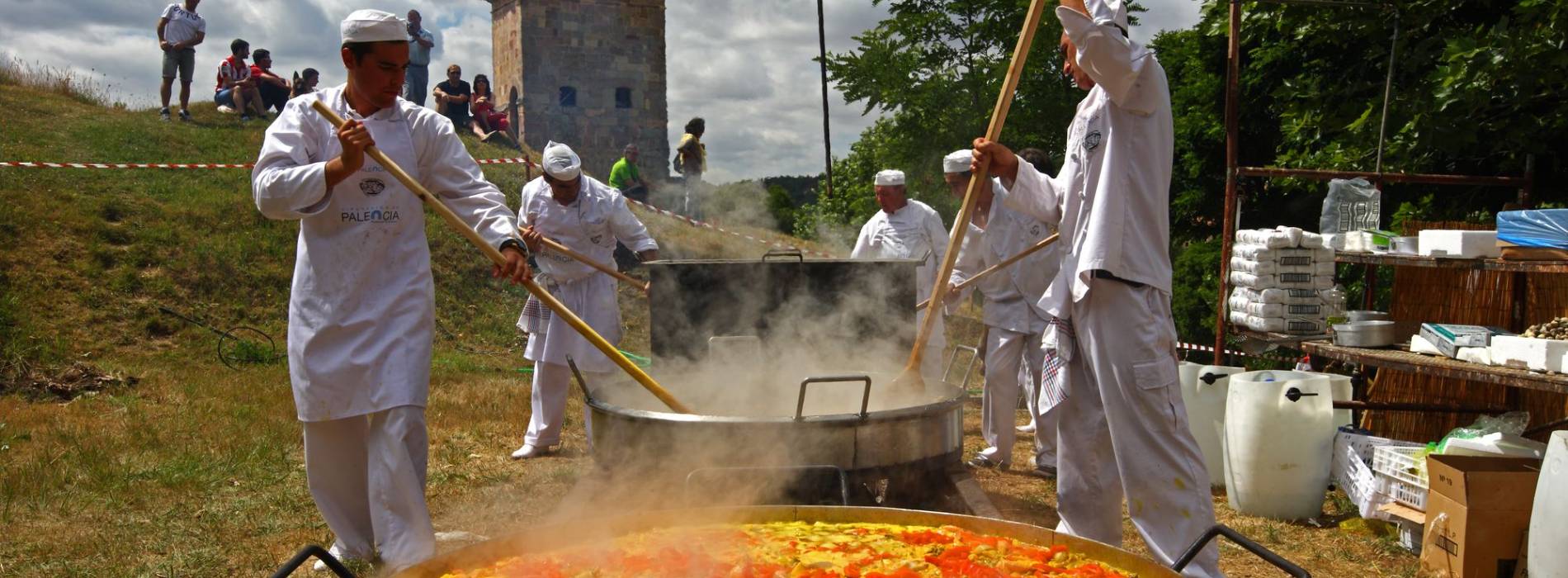 O terreno junto à igreja de pedra de San Justo y Pasto é convertido para a ocasião em cozinha e refeitório improvisado ao ar livre, onde mais de 2.000 pessoas se reúnem para saborear um prato de arroz, ao custo de cerca de três euros.