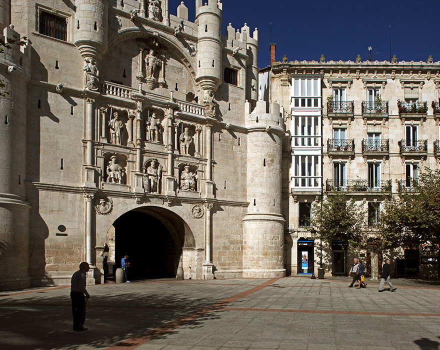 Construída no século XIV como porta de entrada e torre na muralha que rodeava a cidade. Reconstruída no século XVI por Juan de Vallejo e Francisco de Colonia como arco triunfal. Mostra o imperador Carlos...