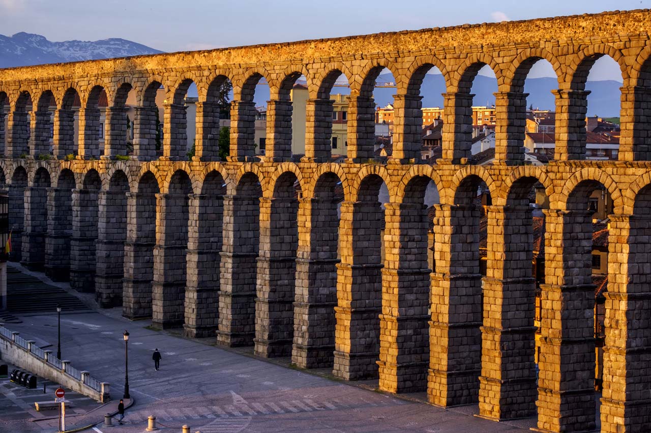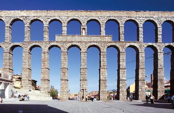 Um aqueduto que remonta ao século I dC, e aos dias da dinastia Flaviana e dos imperadores Nerva ou Trajano. Os 166 arcos de granito da serra de Guadarrama são constituídos por blocos não rebocados assentes num engenhoso equilíbrio de forças. Tem 15 quilômetros de extensão, dos quais um quilômetro é uma série de arcos e o restante canais subterrâneos.