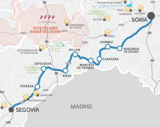 Não se esqueça que, perto destes marcos, poderá desfrutar de pequenas ermidas com incríveis afrescos, como em San Baudelio de Berlanga de Duero ou a de Veracruz em Maderuelo. Castelos e fortalezas pontilham o percurso, Gormaz é o maior da Europa de origem califal. O curioso sítio arqueológico de Tiermes mostra uma cidade romana praticamente esculpida na rocha, e o Parque Natural Hoces del Río Duratón, a jusante da localidade de Sepúlveda, contém no seu desfiladeiro uma grande riqueza arqueológica, histórica e paisagística.