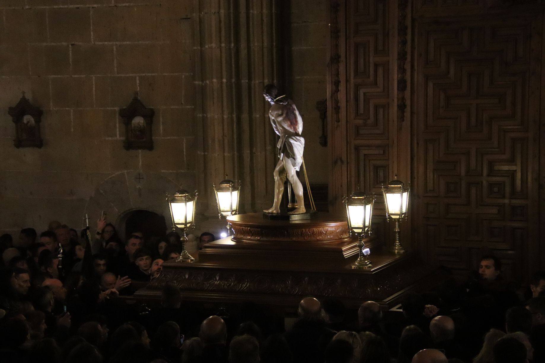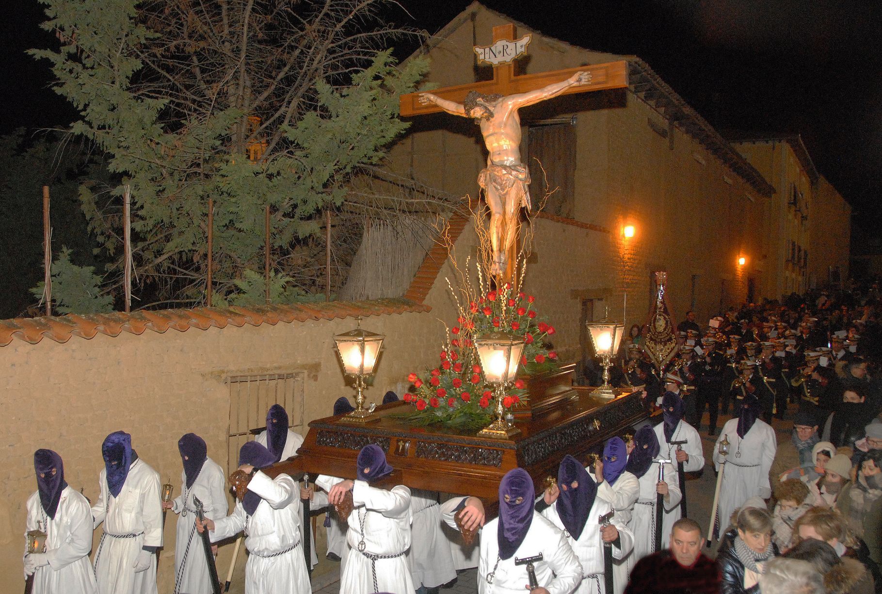 Todos os carros alegóricos são carregados nos ombros dos irmãos pelas antigas e estreitas ruas da aldeia. Particularmente impressionante é a procissão chamada Pasos Grandes (grandes carros alegóricos), conhecida localmente como El Longinos e La Escalera, que corresponde aos carros alegóricos de La Crucifixión (a crucificação) e El Descendimiento (a descida da cruz).