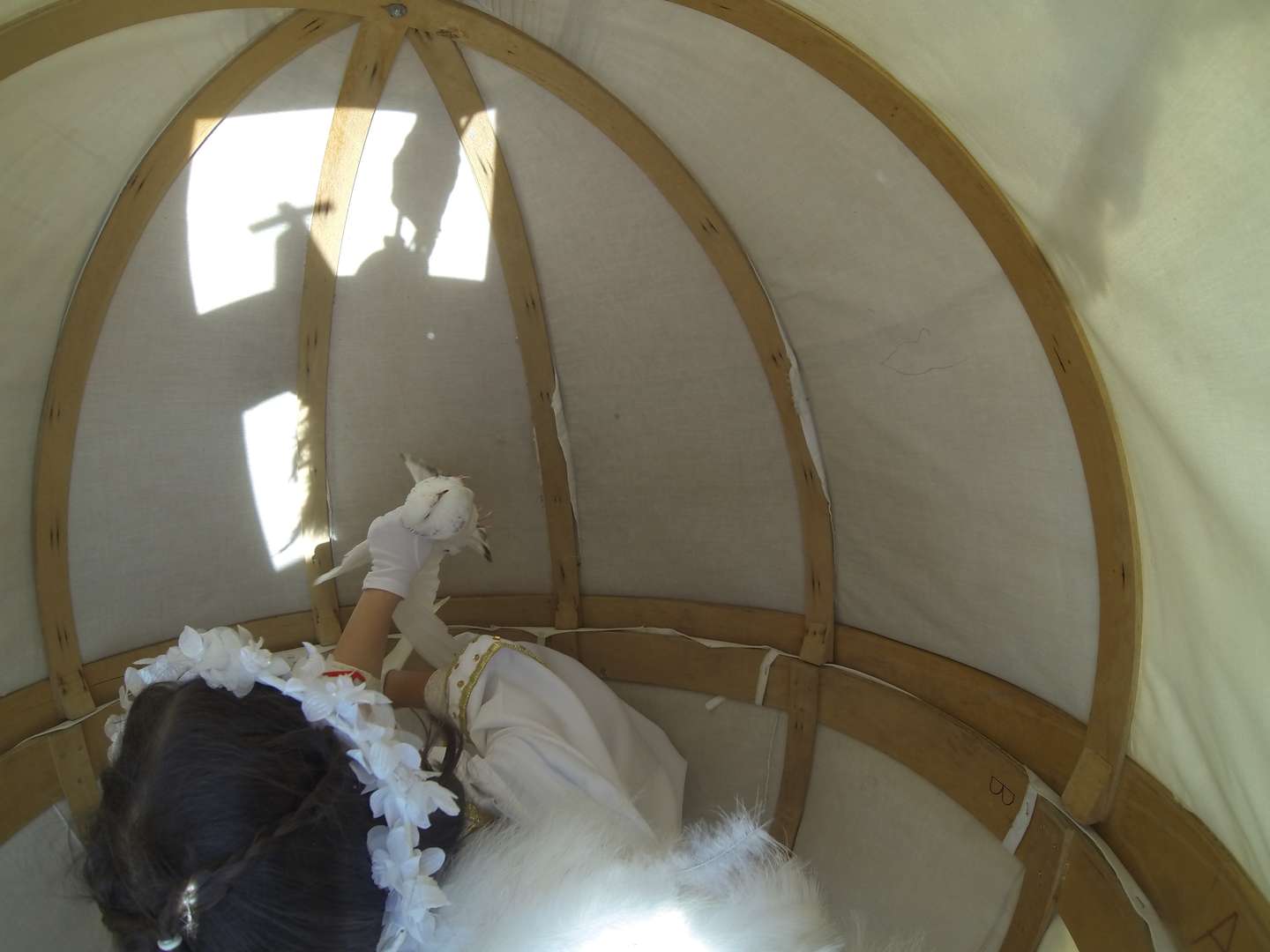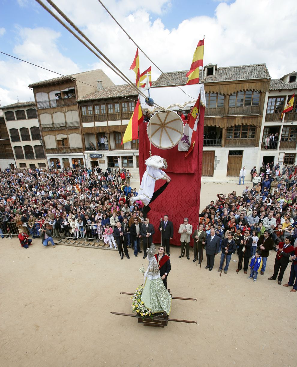 Neste evento, uma imagem da Virgem, coberta por um véu preto, em luto, e acompanhada pela música triste da Banda Municipal, sai em procissão desde a igreja de Santa María em direção à medieval Plaza del Coso. Aí é colocado sobre um pedestal que se situa entre duas torres altas com moldura de madeira revestida a damasco vermelho. Num determinado momento, quando a Virgem já está sentada, surge do topo de uma das duas torres um grande balão de tecido branco, que sempre foi movido por um conjunto de cordas que unem as torres na sua parte mais alta. . O balão pára no meio do espaço entre as duas torres, no topo, e abre-se, revelando no seu interior uma criança vestida com a brancura inocente dos anjos e adornada com uma coroa dourada e duas asas. Graças a um sistema de roldanas, o anjo desce pendurado, solta duas pombas e entra em contato com a Virgem que está abaixo dele. Então ele retira o véu negro da enlutada mãe de Cristo e é elevado novamente, chutando e movendo o véu freneticamente. A multidão aplaude e a Banda Municipal toca o hino nacional. A Ressurreição do Salvador foi representada.