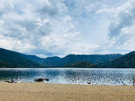 - Margem de um rio, lago ou reservatório