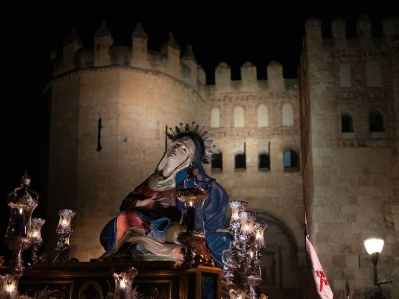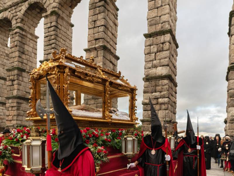 Mais aussi la procession du Santo Entierro qui, le vendredi, part du quartier de Zamarrama et arrive à la Vera Cruz. A proximité des 'Templiers', les Chevaliers de l'Ordre de Malte (propriétaires de l'eglise historique) vont à la rencontre de la procession après avoir veillé. C'est dans cette église romane que l'on célèbre le Santo Oficio. La procession retourne ensuite à la Zamarrama où l'on chante un Salve Dolorosa et on assiste au Sermon de la Soledad. Ces cérémonies et ce cortège reproduisent fidèlement ceux que réalisaient déjà en 1134 les chevaliers de la Soberana y Militar Orden Hospitalaria de San Juan de Jerusalén de Rodas y Malta.