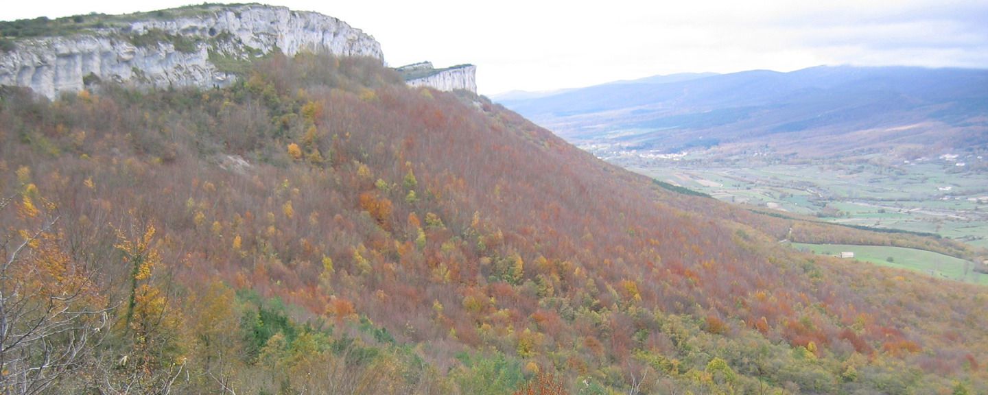 这趟旅途穿过绿色的田野,到达位于高耸的悬崖阴影下的瓦列哈斯山毛榉森林。
