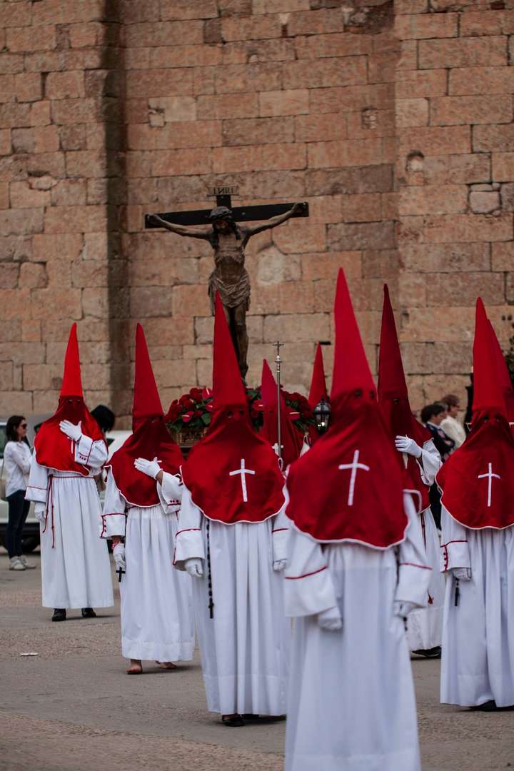 这个庆祝活动具有一些独特的特点。它是拉瓜Guareña地区最重要的庆祝活动,也是萨莫拉省最有趣的庆祝活动之一。拿撒勒兄弟会的形象引人注目,他们身着紫色服装,头戴荆棘冠冕,脖子上缠着绳索,尤其是在圣周四和耶稣受难日的游行中。深夜,他的十字架之路继续震撼着那些沉思和追随他们的人。