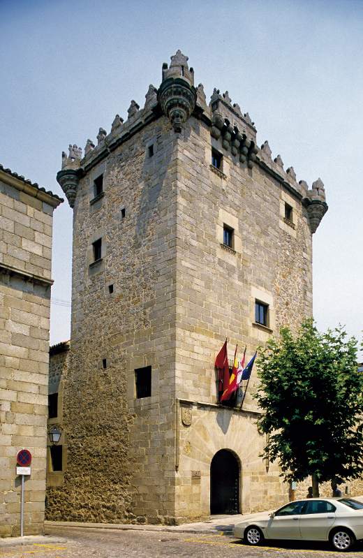 这是一座高大的防御塔,有城垛,入口后有一个文艺复兴式庭院。今天,这里是省议会的办公室。