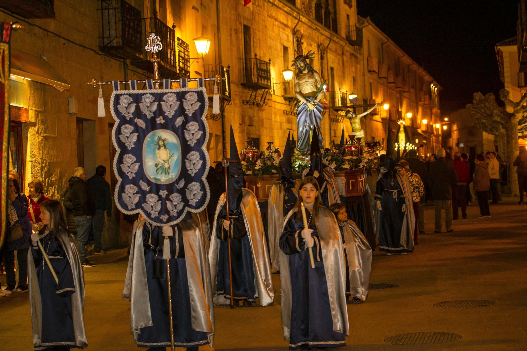 在众多以游行和礼拜活动庆祝圣周的村庄中,最引人注目的节日是布尔戈德奥斯马-休达德奥斯马。该村是主教的所在地,节日期间会展出不同的彩车,组成每日游行。其中一辆是 16 世纪的基督复活 (el Cristo Resucitado) 彩车,是胡安·德·朱尼 (Juan de Juni) 设计的原作的复制品。