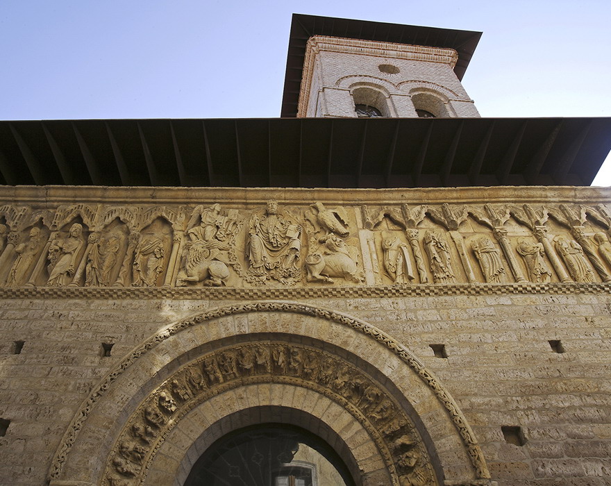 San Isidro杜埃尼亚斯修道院更多信息可追溯至 10 世纪。这是一座原始的西哥特建筑,1060 年至 1075 年由阿方索六世并入克鲁尼。该建筑建于阿方索三世·马格诺 (866-910) 统治期间。教堂有三个中殿,中间有一个横厅和三个后殿,中间由十字形柱子隔开,没有柱子。门道是罗马式的。最古老的部分,至今仍保存着山墙端门和矩形塔楼。柱头让人想起了Frómista和 Silos。这里居住着著名的帕伦西亚拉潘斯修道士,距离城市约 13 公里,紧邻Carrión河和Pisuerga河的交汇处。弥撒期间会唱格里高利圣歌。