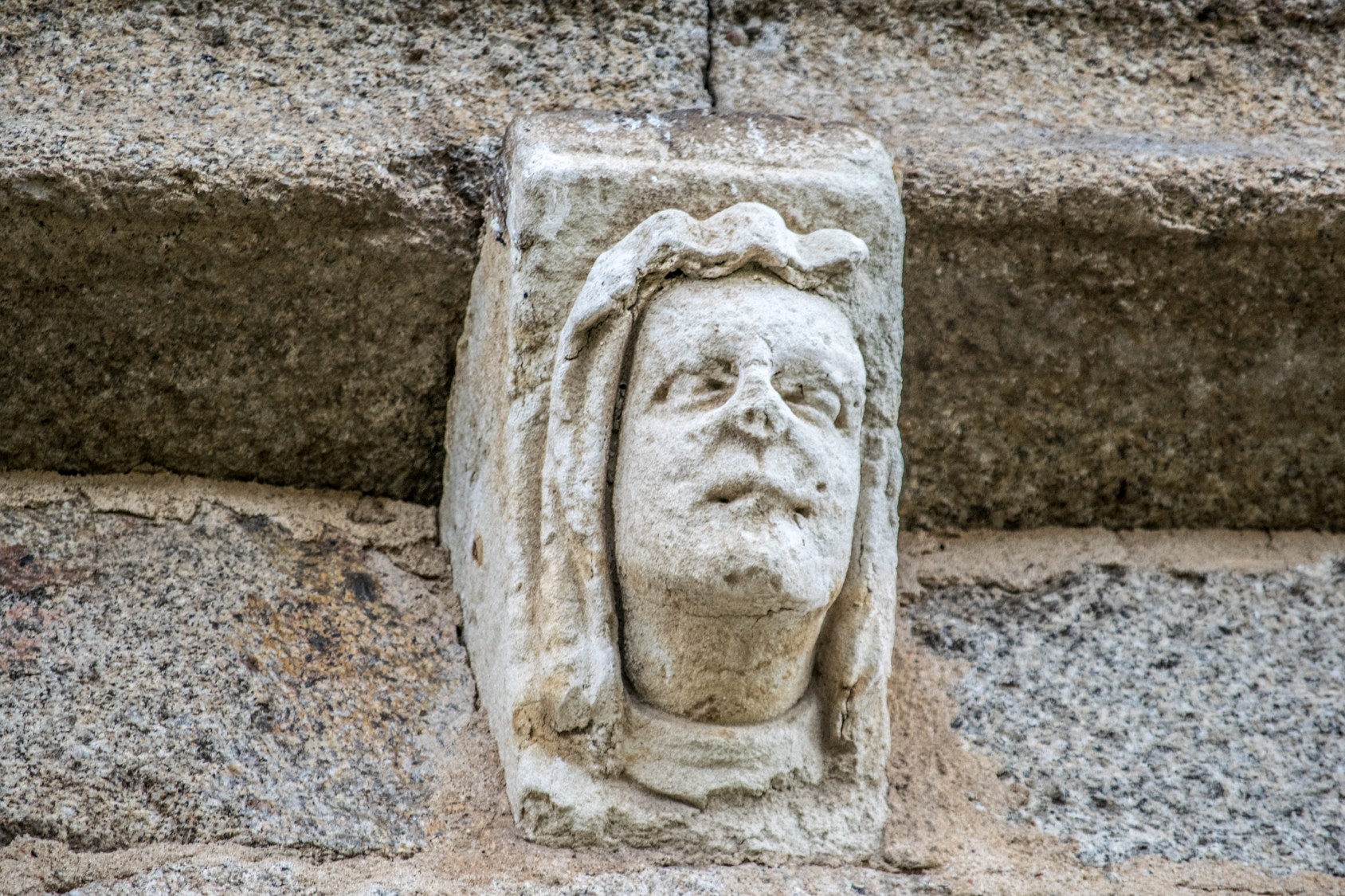 它有两个入口,一个在西边的山墙,顶部有一个简单的钟楼,另一个在北边,顶部有一个突出部分,由雕有植物图案、人物和动物头像的牛腿支撑。