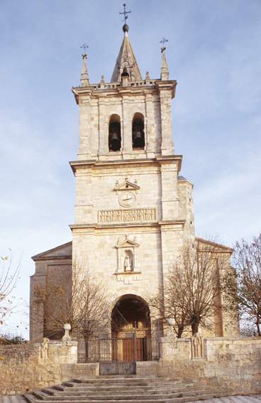 这座建筑建于 15 世纪末 16 世纪初,采用大厅教堂平面图。它有三个中殿,高度和横梁相同,左侧增设了一个侧礼拜堂,右侧增设了圣器收藏室。外部被石栅栏包围。