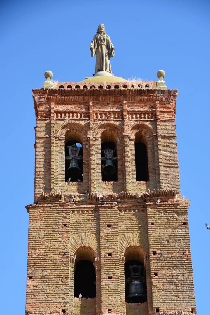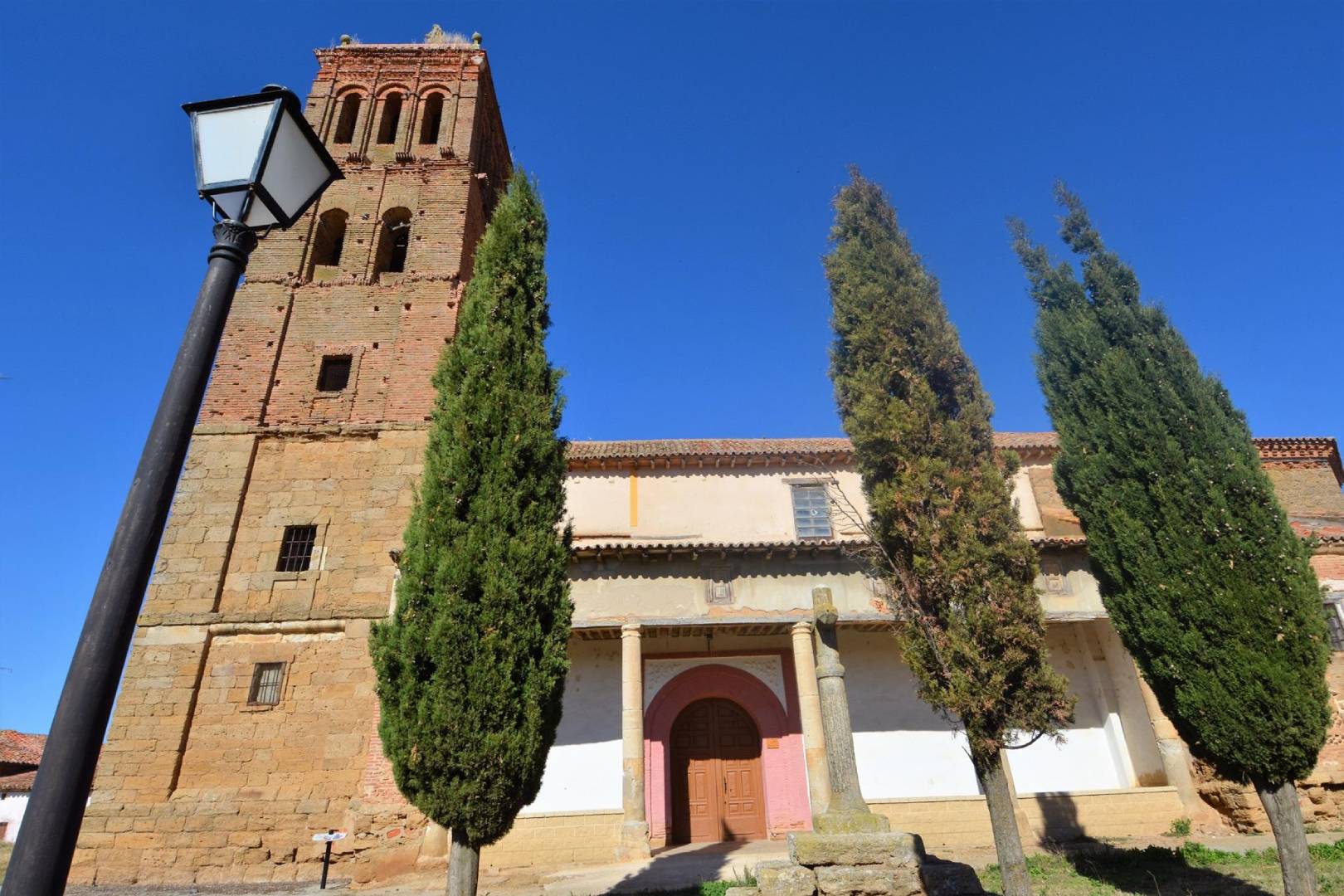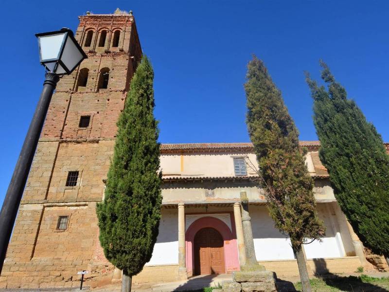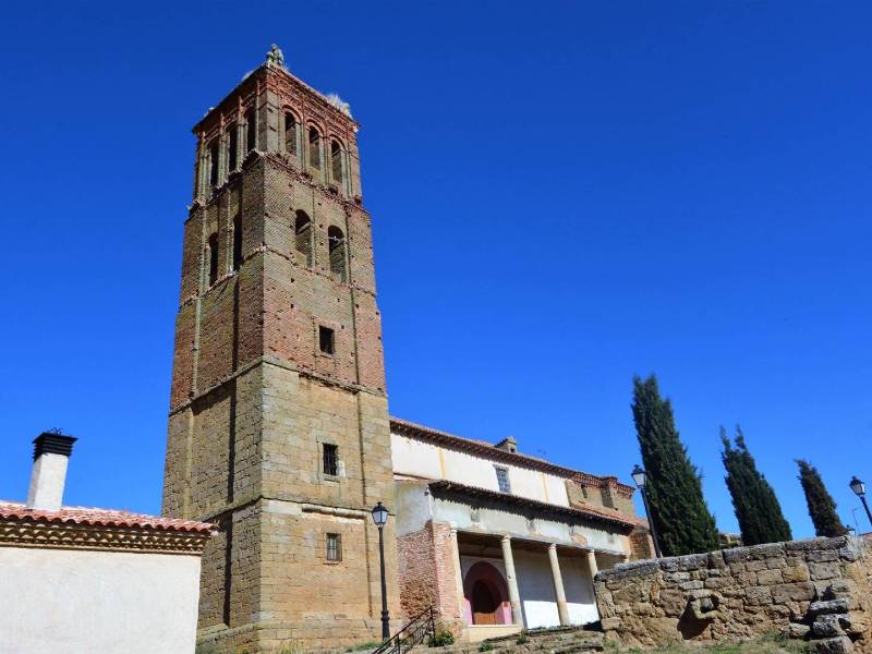 教堂只有一个中殿和两个小教堂,其 16 世纪的巨大钟楼于 2021 年修复,其低矮的坚固石体和砖砌的上层楼面设有许多窗户。圣心雕像位于圆顶上。教堂内部,除了长老院上方的肋状拱顶外,主要的文艺复兴时期祭坛画也十分引人注目,由多个雕刻场景组成。这是法国艺术家雅克·伯纳德 (Jacques Bernard) 的作品,他于 1542 年与多位门徒合作雕刻了这幅作品。二十年后,莱昂的卡兰塞哈斯 (Carrancejas de León) 为它上了彩色颜料。1999 年,它经过精心修复。在所有同类型的雕塑中,这组雕塑是全省最有价值和最令人钦佩的雕塑之一。