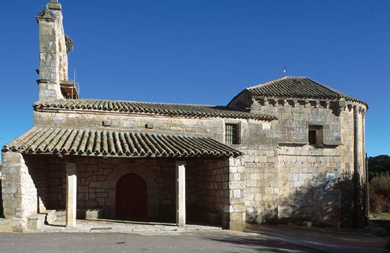 教堂建于 12 世纪下半叶,尽管当时它只是主教堂,顶部是半圆形后殿,前面是直立的长老住宅区。它的外部装饰引人注目,细长的柱子顶部有植物柱头,屋檐由牛腿支撑。在后殿中央的低矮布料上,有一个带镂空格子的小玫瑰窗,表明了罗马式萨莫拉诺风格的影响。中殿属于 16 世纪,由支撑现代屋顶的隔板拱门隔开;半圆形拱门和洗礼堂也属于这个世纪。